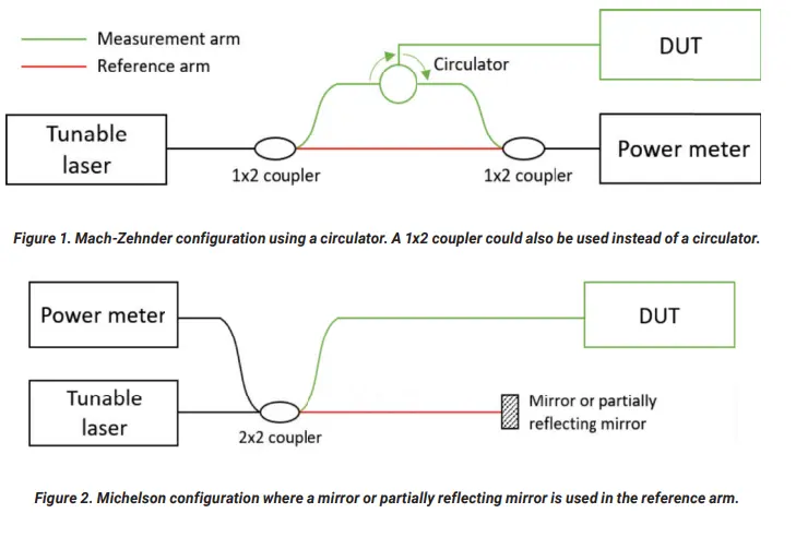测量臂内的距离测量可通过两种方式实现:已知参考路径长度,或利用测量臂内的反射作为参考。通常,器件(DUT)内部的陶瓷插芯(Ferrule)或光子集成电路(PIC)的输入端面可作为距离测量的便捷参考点。